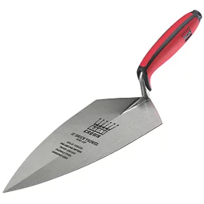 Solid-forged trowel with hardened edges is stronger and more durable, ideal for cutting bricks. Non-slip handle with finger guard provides support and comfort during all-weather use. Well-balanced and flexible design loads easily and reduces strain during use. Hard end handle butt for tapping-in bricks with ease.